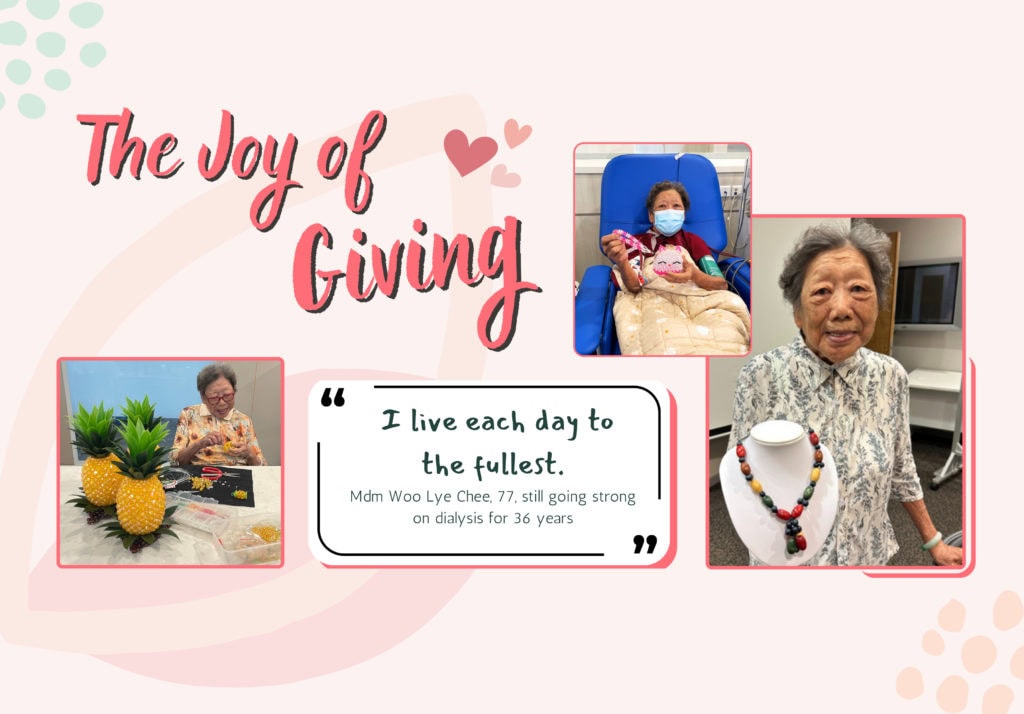 With support from our giving donors, NKF can continue to Give Life & Hope to patients like Mdm Woo. Your donations will go a long way in providing subsidised dialysis treatment and holistic care for kidney failure patients – bringing hope and a better quality of life to those in need.
