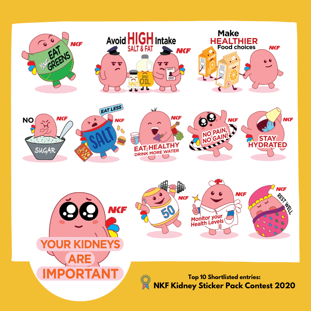 In conjunction with World Kidney Day 2020, NKF launched its very first NKF Kidney Sticker Pack contest to rally people from all walks of lives to design a set of kidney stickers that encourages people to lead a healthier lifestyle and raise awareness of kidney health!