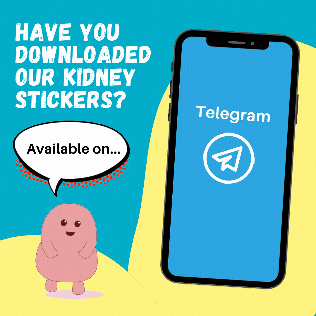 Share these two fun kidney sticker packs on WhatsApp and Telegram with your friends and loved ones to spice up your daily conversations while raising awareness of kidney health!