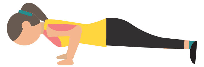Get down on all fours, legs extended out. Arms shoulder-width apart and feet close together.