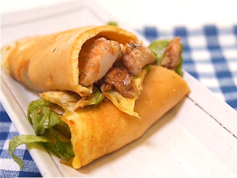 7. Roll the omelette to wrap the chicken, and it’s now ready to serve.