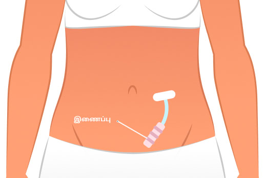 அடிவயிற்று துளையில் ஒரு கதீட்டர் நிரந்தரமாகப் பொருத்தப்பட்டிருக்கும்.