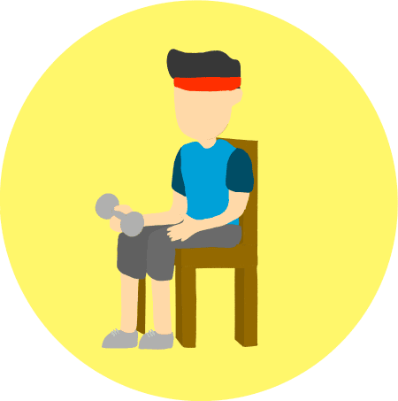 Strengthening exercises should be included in all phases of a training program. Patients may begin with simple seated variations of exercises found in the orange and yellow sections. As they progress, they may then proceed to standing variations or incorporate the use of weights such as water bottles or dumb bells found in the blue section.