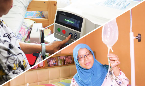 A home-based treatment, the inside lining of your abdomen acts as a natural filter. Wastes are removed by a sterile fluid, which flows in and drains out of your abdomen in cycles. There are 2 types of PD – Continuous Ambulatory Peritoneal Dialysis and Automated Peritoneal Dialysis.
